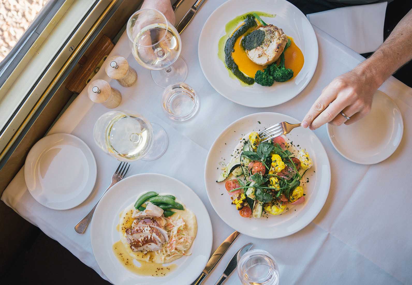 Inspirándose en la diversidad de entornos que recorren nuestros trenes, nuestro experto equipo culinario trabaja en estrecha colaboración con proveedores, agricultores y proveedores locales para obtener los mejores ingredientes, creando un menú innovador de inspiración regional, acompañado de vinos y bebidas de calidad con todo incluido.